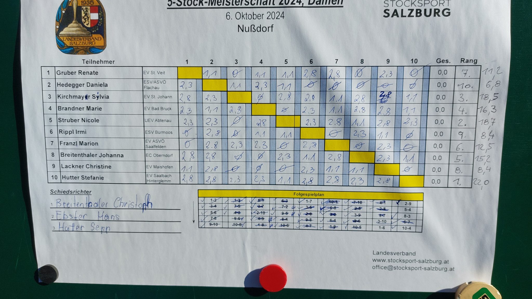 Herzlichen Dank an alle Beteiligten für die Durchführung dieser Meisterschaft.