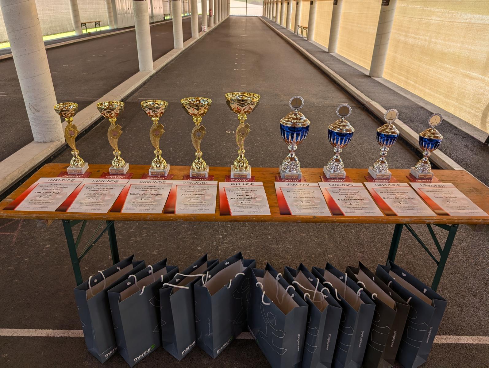 Bei der Preisverteilung durch BO Eder Gerhard und Jugendfachwart Harry Neubauer, konnten sich die Jugendlichen, neben Trophäen und Urkunden, auch über Kino Gutscheine freuen.